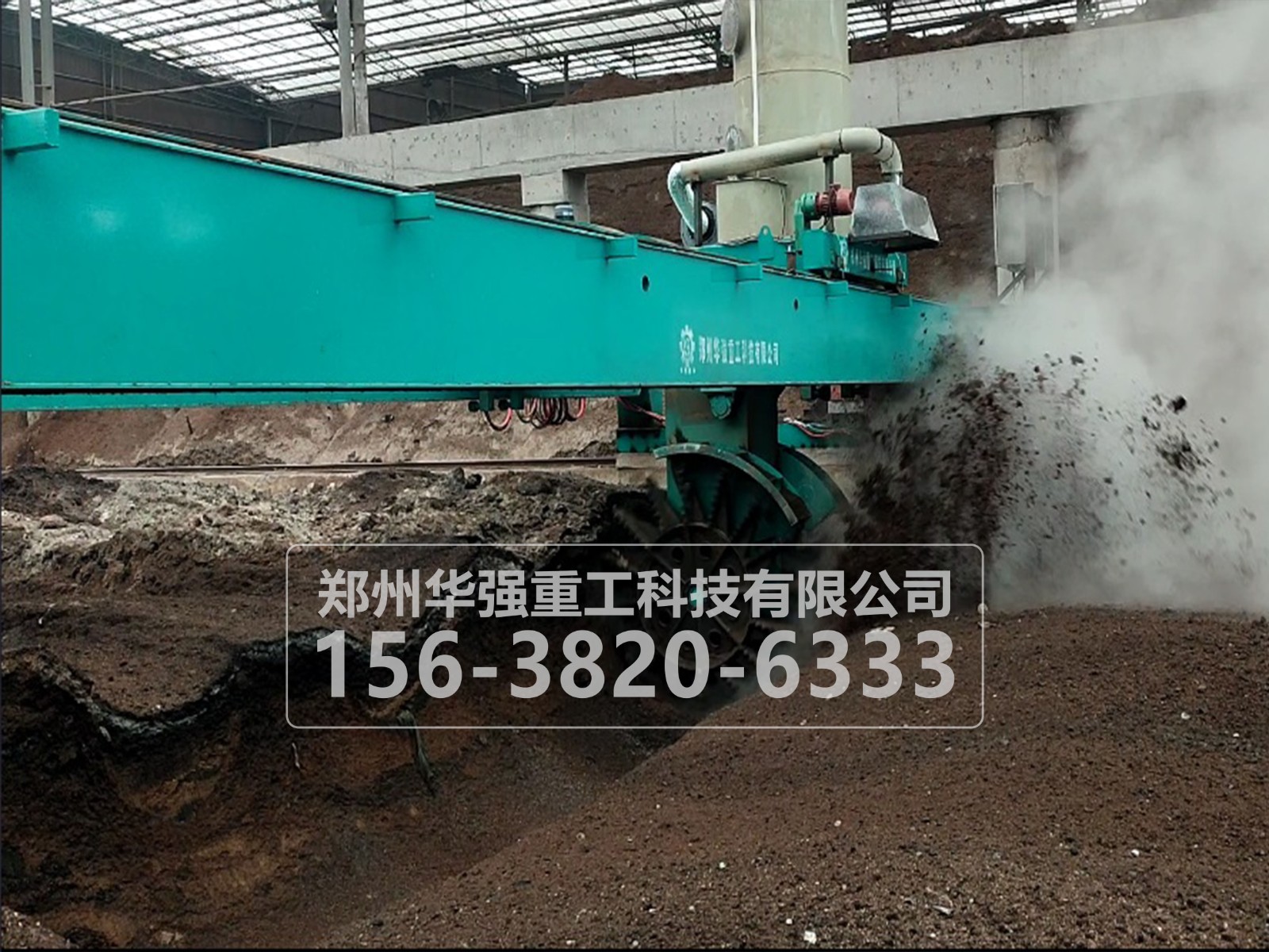 智能化自動控制發酵物料的翻堆過程,在縱、橫向行走機構的作用下,高速旋轉的圓耙將發酵物料連續的拋起、散落并產生一定的位移,使物料在池內有規律、等距離的漸進式后移,從而形成了一種連續的好氧發酵過程。