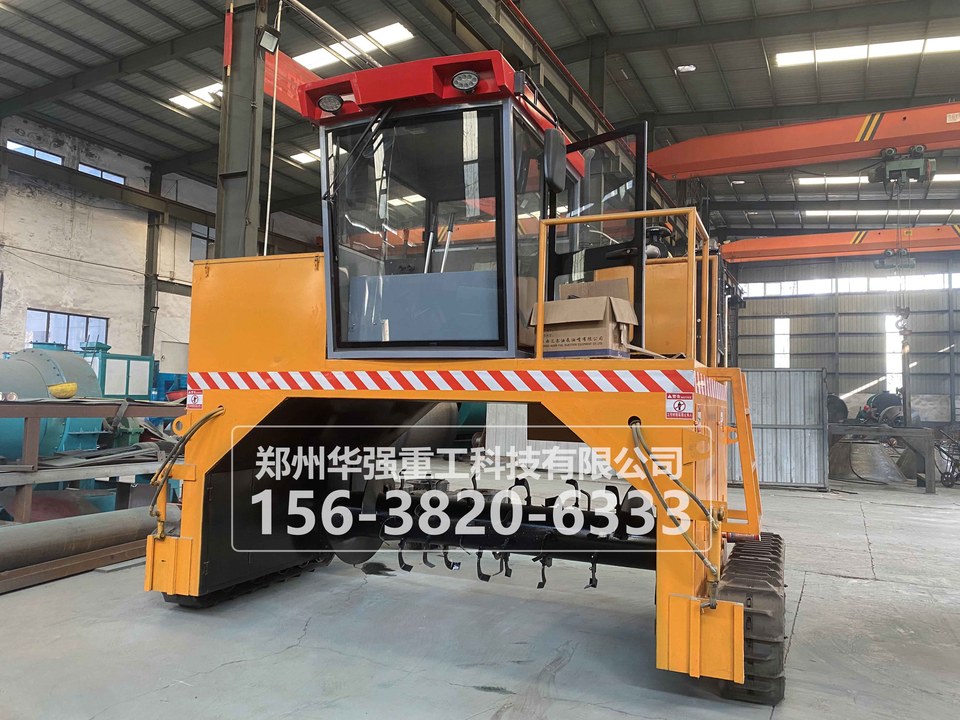 豬糞有機(jī)肥翻拋機(jī)采取履帶式行走設(shè)計(jì),可前進(jìn)、倒退、轉(zhuǎn)彎,由一人操控駕駛。行駛中整車(chē)騎跨予先堆置長(zhǎng)條形肥機(jī)上,由機(jī)器下掛裝的旋轉(zhuǎn)刀 ,對(duì)肥機(jī)原料實(shí)施翻拌、蓬松、移堆,車(chē)過(guò)之后形成新的條形堆垛,即可在開(kāi)闊場(chǎng)地,也可在車(chē)間大棚實(shí)施作業(yè)。ZK2300翻堆機(jī)突破在于整合了物料發(fā)酵后期的破碎功能。隨著物料逐漸脫水,加裝破碎裝置的刀 可有效的破碎肥料在發(fā)酵過(guò)程中形成的板塊,不僅省去了一臺(tái)粉碎機(jī),更主要的大大提高了粉碎的效率,降低了成本.